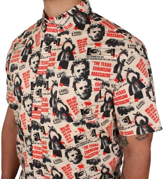 NEW Creepy Co. TEXAS CHAINSAW MASSACRE One Sheet BUTTON-UP DRESS SHIRT
